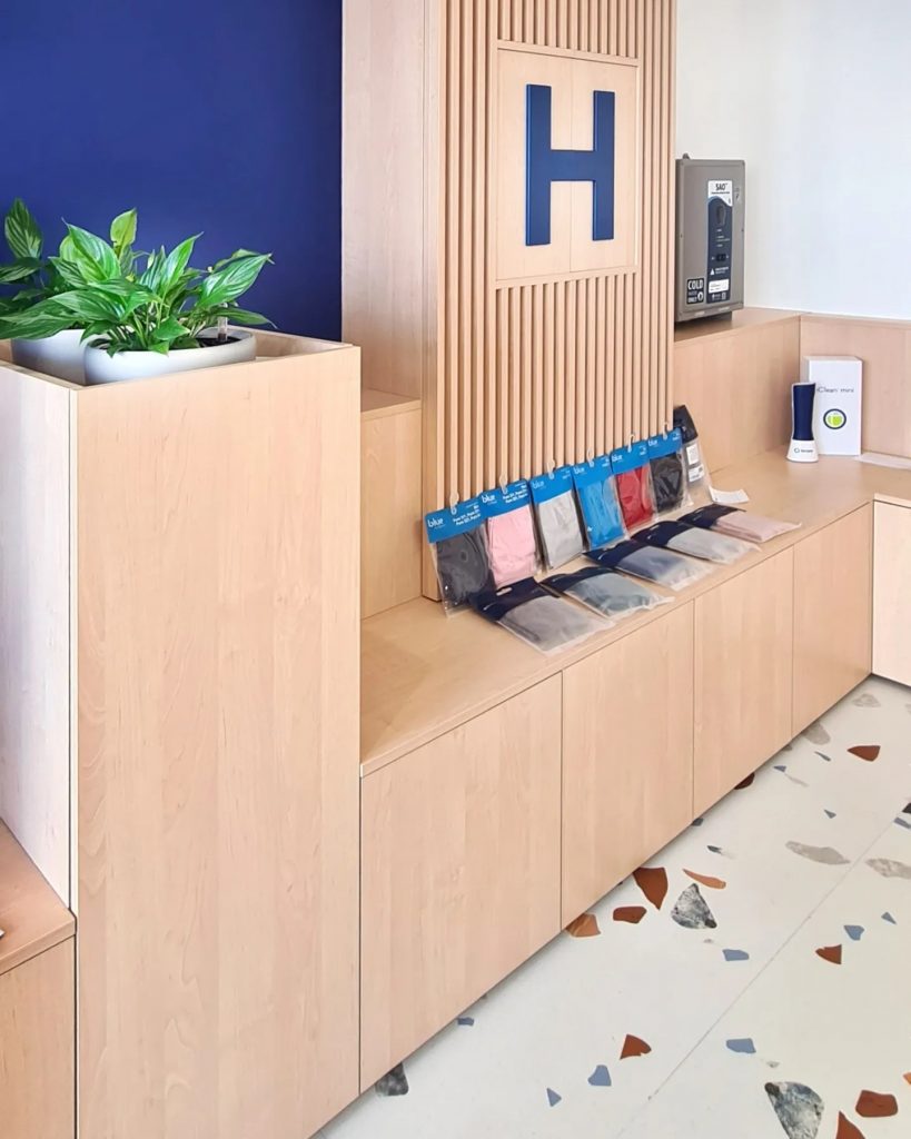 The store is located in new complex SAVADA, New Belgrade. Following the main guides from the companies guidebook regarding the colors and materials, we have created a bright and airy atmosphere in a limited space.